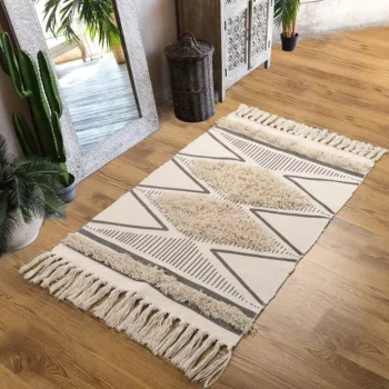 Chic Diamond Boho Cotton Runner Rug with Tassels
