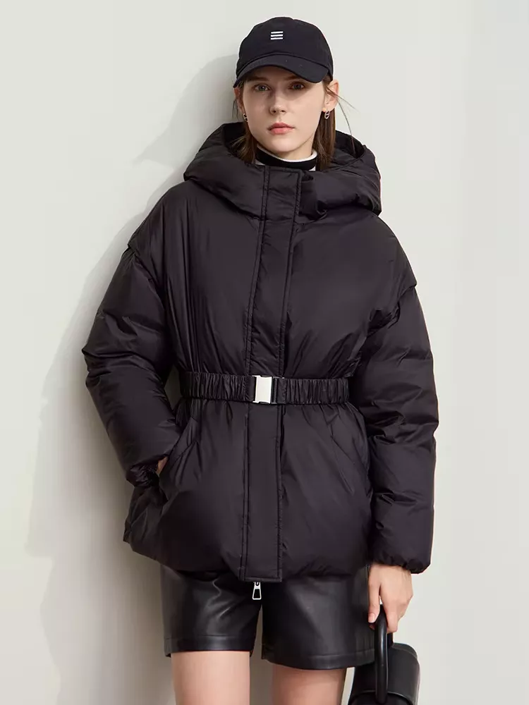 This women’s winter down jacket boasts premium construction and thoughtful design. It’s crafted with 85% white duck down for superior warmth without the bulk, ensuring you stay comfortable even in the chilliest temperatures. The jacket features detachable sleeves, offering you versatility for unpredictable weather – wear it with full sleeves when it’s freezing or switch to a vest style when you need extra mobility on milder days. With an adjustable elastic waist and a wide, flattering fit, this jacket contours your body for a stylish yet relaxed look.