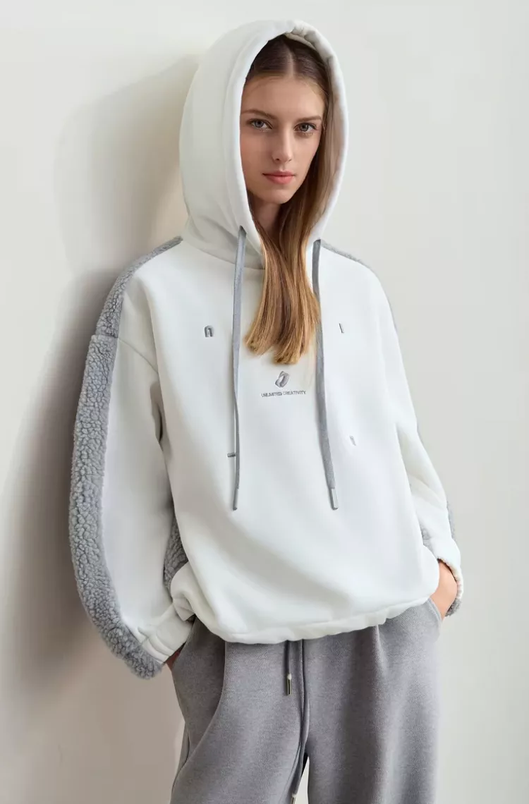 This sweatshirt is more than just a winter essential—it’s a statement piece. The splicing imitation lamb wool not only keeps you warm but also enhances the visual appeal with its soft, textured finish. The hooded design with drawstrings adds versatility, making it suitable for various settings, from casual outings to relaxed weekends. The embroidered letter details bring a touch of modern flair, while the loose fit provides unmatched comfort, allowing for effortless layering over your favorite tops.