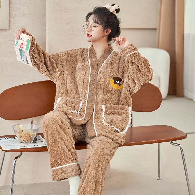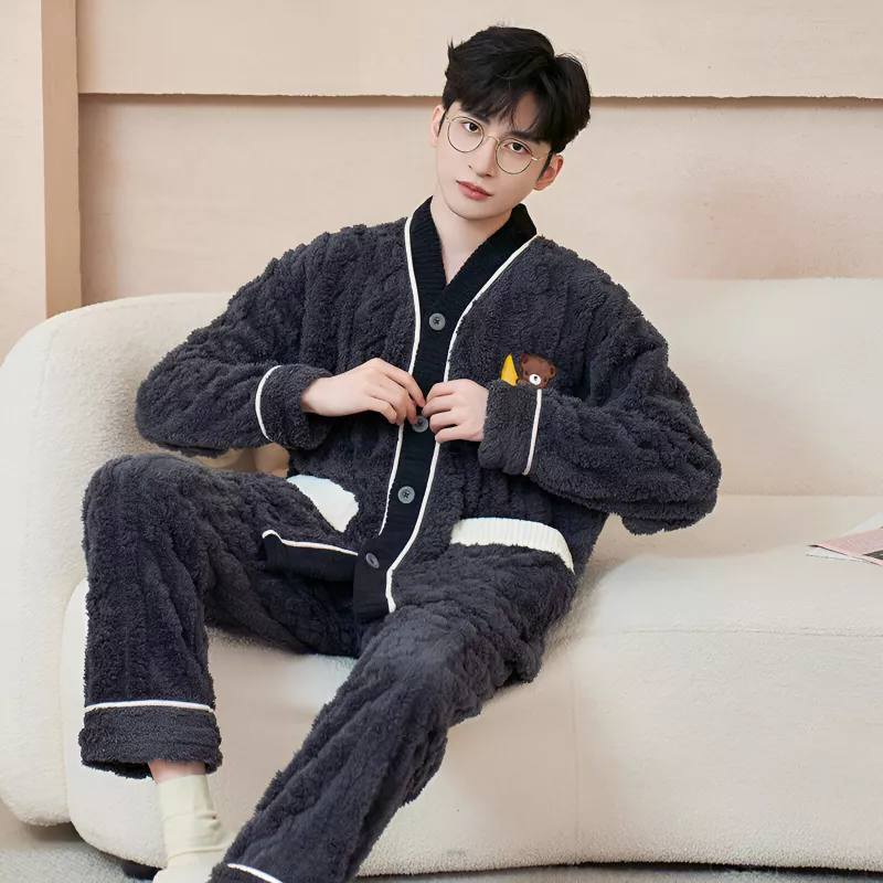 Transform your cold winter nights into a warm and stylish experience with our Winter Plush Pajama Sets for Couples. These matching pajama sets are perfect for partners who want to combine comfort and charm in their sleepwear. Designed with a soft plush material and an adorable bear print, these pajamas bring a delightful blend of warmth and cuteness. The black-and-white cardigan style adds a touch of sophistication, making it a must-have for cozy evenings at home.