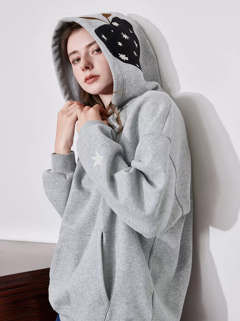 This hoodie is ideal for everyday use, whether you’re running errands, hitting the gym, or enjoying a cozy day indoors. The playful apple embroidery adds personality, while the thick fleece fabric ensures you stay snug no matter the weather. The loose fit and stylish design make it perfect for layering over other outfits, giving you versatility and warmth without compromising on fashion.