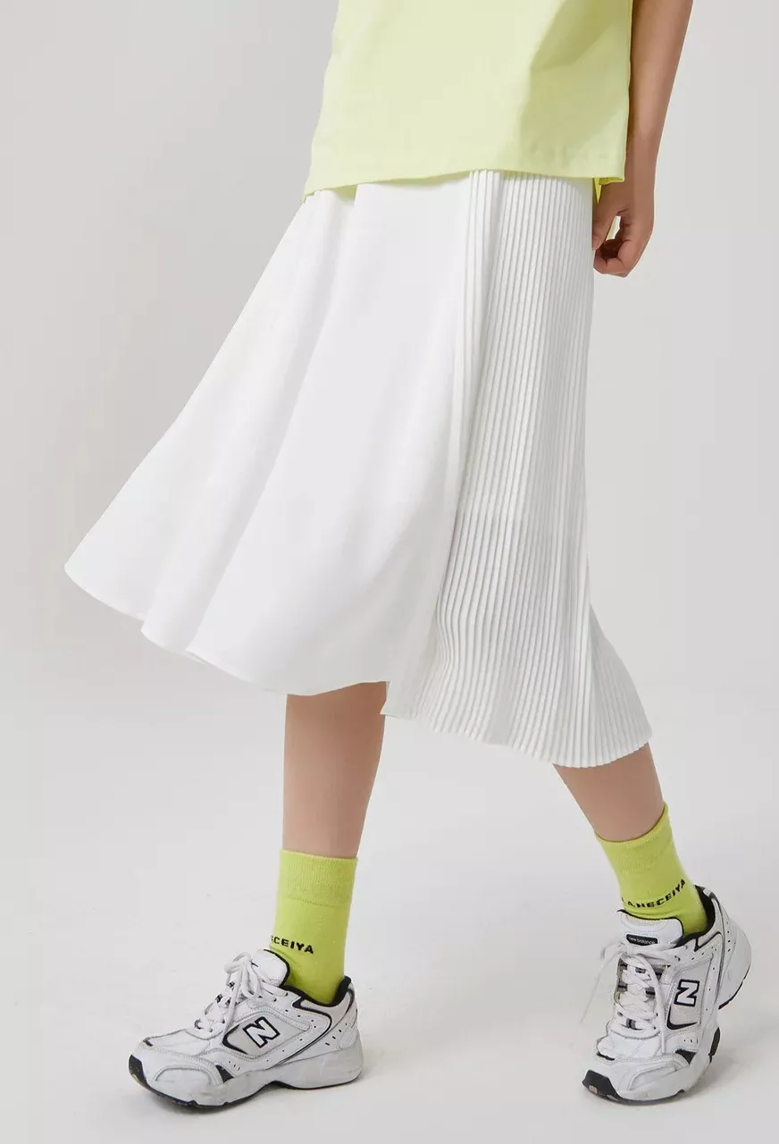 For a professional look, pair this pleated skirt with a tucked-in button-up shirt and a structured blazer. Add pointed-toe heels and a sleek bag to complete the ensemble. For casual days, style it with a soft knit sweater and ankle boots, or go for a relaxed vibe with a tank top and sneakers. The asymmetrical design makes it easy to create standout looks that suit your personal style.