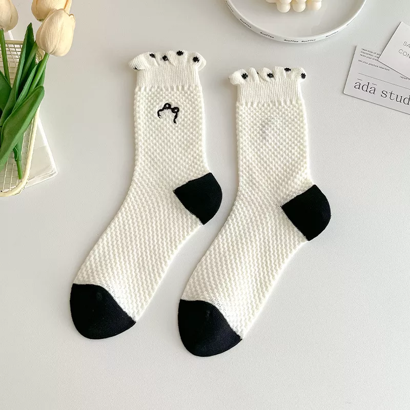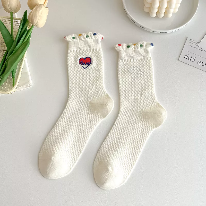 These mid-tube socks are more than just accessories – they’re a statement piece that combines playful design with practical comfort. The lace ruffle detail adds a whimsical touch, while the medium thickness ensures they’re perfect for cozying up in cooler weather or adding flair to your spring and summer outfits. Whether you’re dressing up a casual look or making a statement with your footwear, these socks deliver style and function in equal measure.