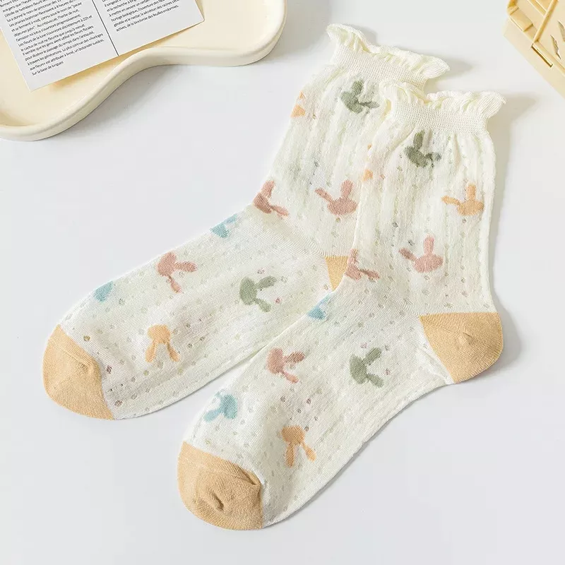 Whether you’re pairing them with a cute skirt, jeans, or your favorite lolita outfit, these socks will add that extra special touch to your wardrobe. With their fun, cartoon-inspired pattern and stylish ruffle detail, they bring out a cheerful vibe that’s perfect for both casual and creative looks.