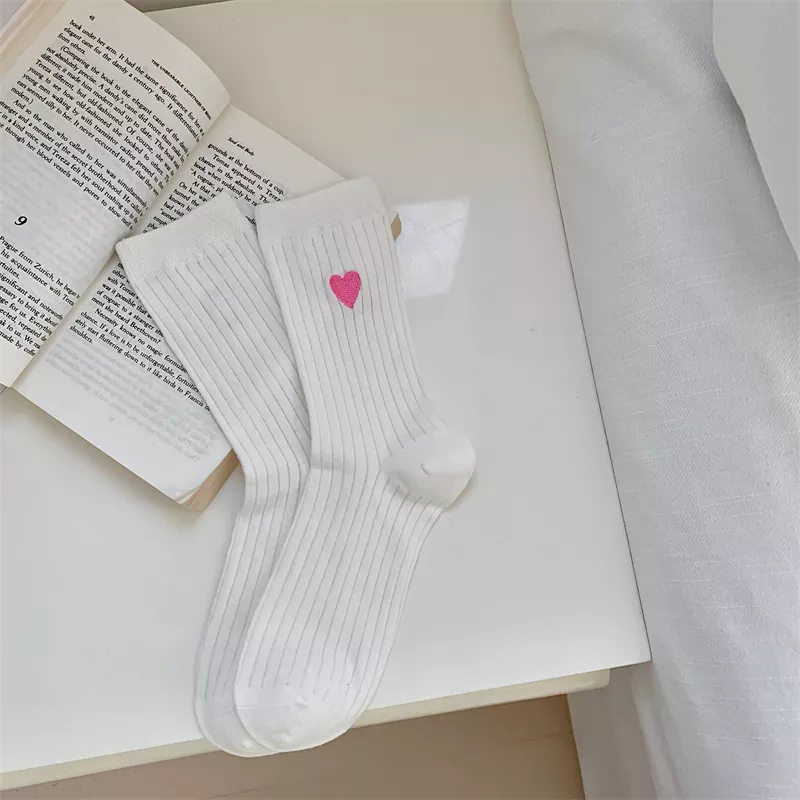 Bring a playful touch of charm to your wardrobe with these Women’s Cotton Mid-Tube Socks. Designed with a Japanese sweet style, these socks feature adorable embroidered love details and a classic solid color stripe pattern that exudes both simplicity and elegance. Made from soft, breathable cotton, they are perfect for adding a stylish twist to your spring and summer outfits. Whether you’re embracing a kawaii vibe or keeping it casual, these socks are a delightful and practical addition to your collection.