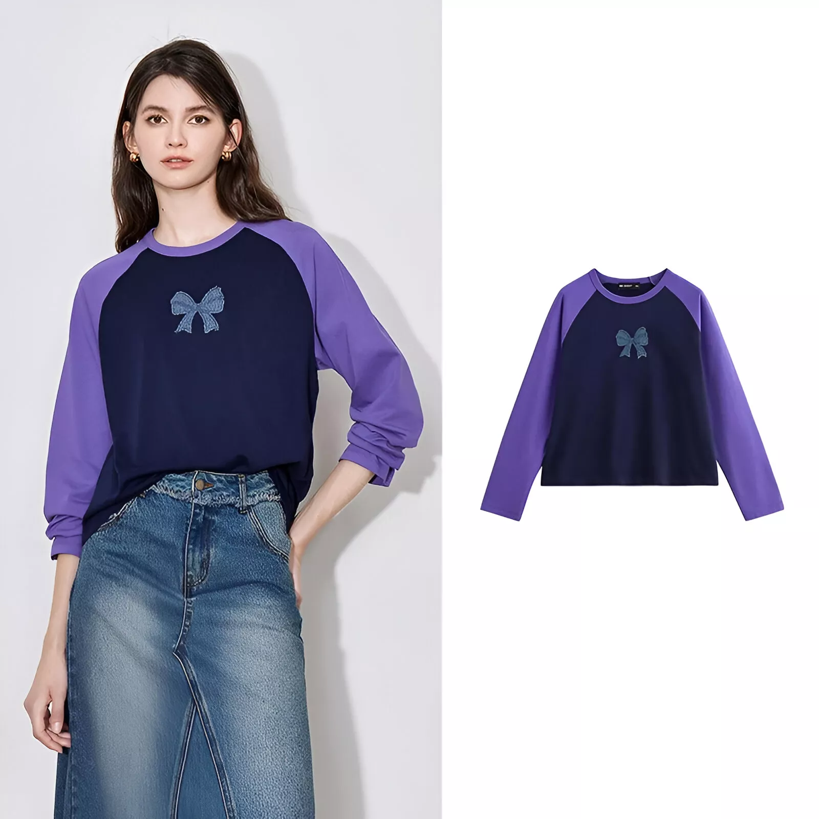 Elevate your casual wardrobe with the Women’s Denim Bow Raglan Sleeve T-Shirt. This versatile top combines playful design with timeless comfort, featuring a contrasting color scheme and a denim bow detail that adds a unique twist to your outfit. Perfect for winter, this pullover top is crafted from premium polyester jersey fabric, providing a cozy yet breathable fit for any occasion. Whether you’re dressing up for a day at the office or keeping it casual on the weekend, this top ensures you stay stylish and comfortable.