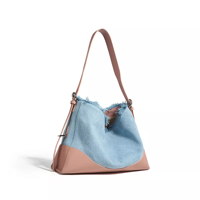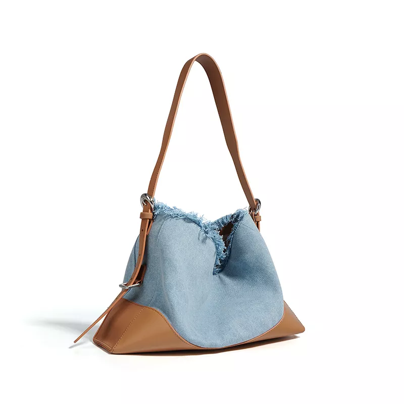 What makes this bag truly special is its unique combination of high-quality denim and genuine leather, offering durability without compromising on style. The thoughtful bucket design provides plenty of space while maintaining a sleek profile, making it an ideal choice for women who value both function and fashion.