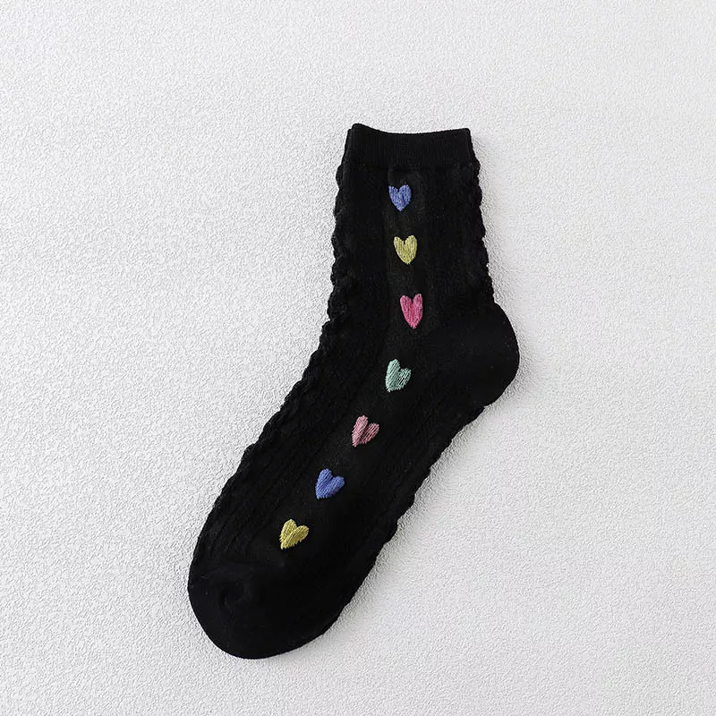 These mid-tube socks are perfect for adding a touch of fun to your everyday outfits. Their breathable design makes them ideal for warmer months, while the mid-tube length ensures added comfort during cooler days. Whether you’re heading out for a casual day, accessorizing your Harajuku-inspired look, or gifting them to a friend, these socks bring versatility and charm to any wardrobe.