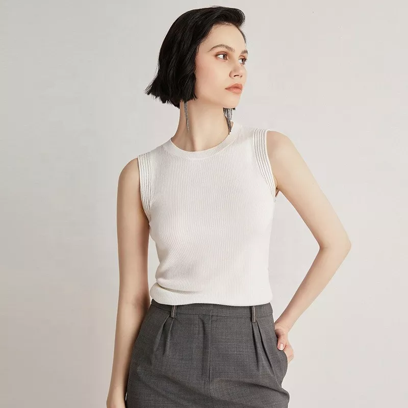 Women’s Sleeveless Merino Wool & Silk Knitted Jumper
