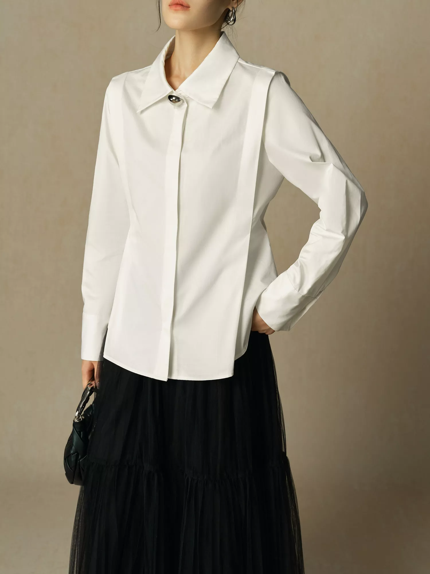 Designed specifically for winter months, this blouse offers the perfect balance of warmth and style. Pair it with tailored trousers or a pencil skirt for a refined office look, or dress it down with jeans for a casual chic appearance. Its classic white color makes it a versatile piece that can be paired with almost anything, making it a must-have addition to your wardrobe.