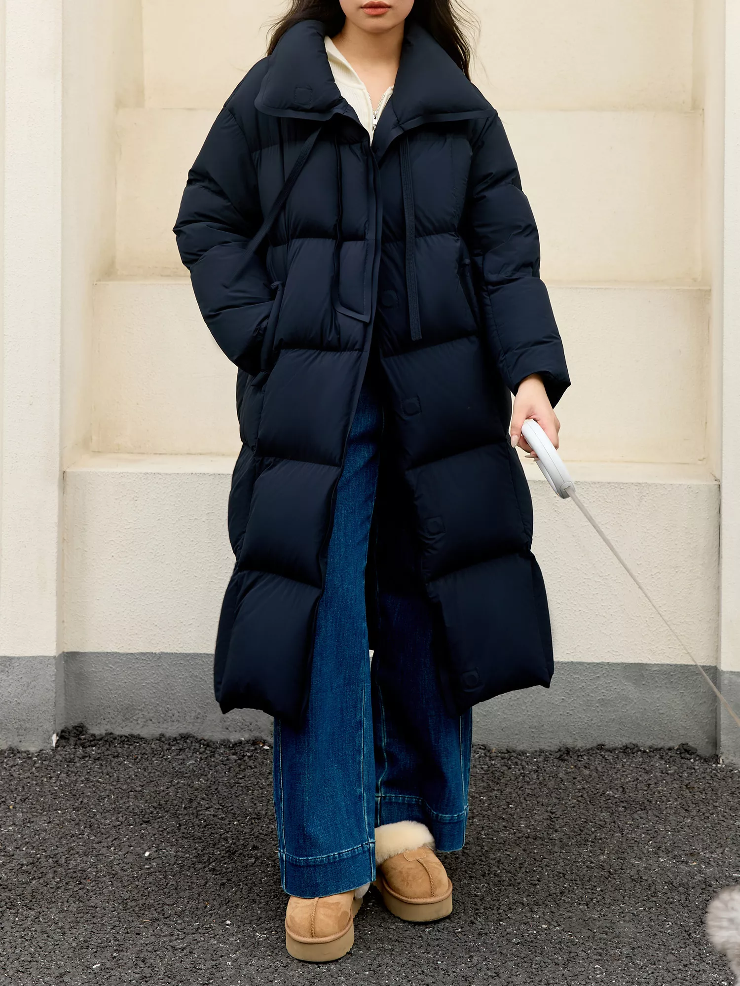Prepare for winter in style with this chic, long down coat that’s designed to keep you cozy without compromising on fashion. Featuring a contemporary wide-waisted silhouette and a sophisticated solid color design, this jacket is perfect for everything from daily commutes to weekend outings. Whether you’re braving the chill on a crisp autumn day or bundling up for the colder winter months, this coat provides the perfect balance of warmth, comfort, and elegance. Designed for young women who want to embrace winter fashion without sacrificing practicality, it’s a must-have addition to your cold-weather wardrobe.