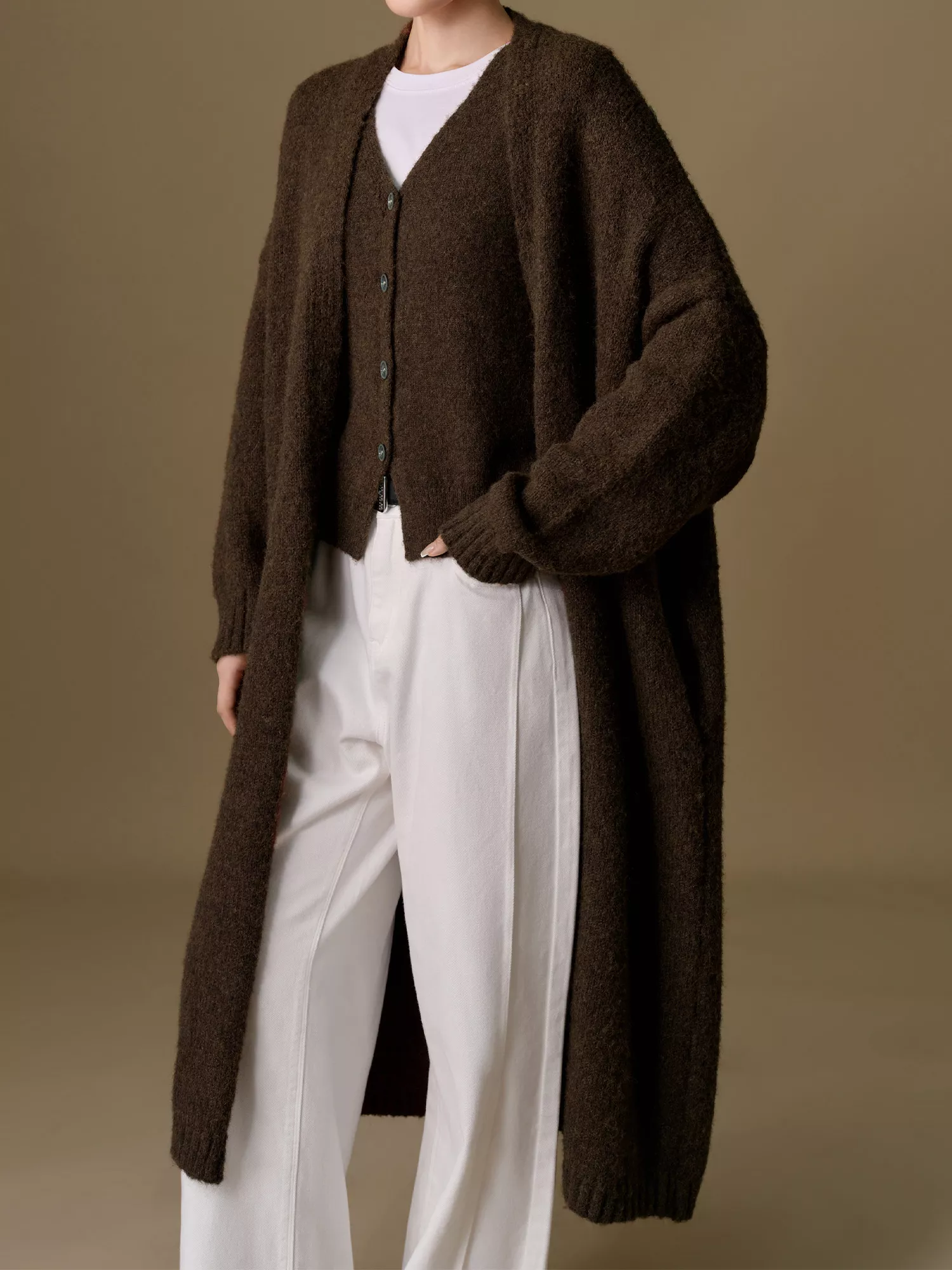 The sleeveless vest and long coat create a flattering, loose-fitting silhouette that ensures comfort and ease of movement. With a sleek, buttoned design and an on-trend O-neck collar, this two-piece set is made to complement any casual or semi-formal look. Featuring a slightly thick knit, it provides warmth throughout the cooler seasons while offering a modern, minimalist style that pairs seamlessly with both jeans and dresses.