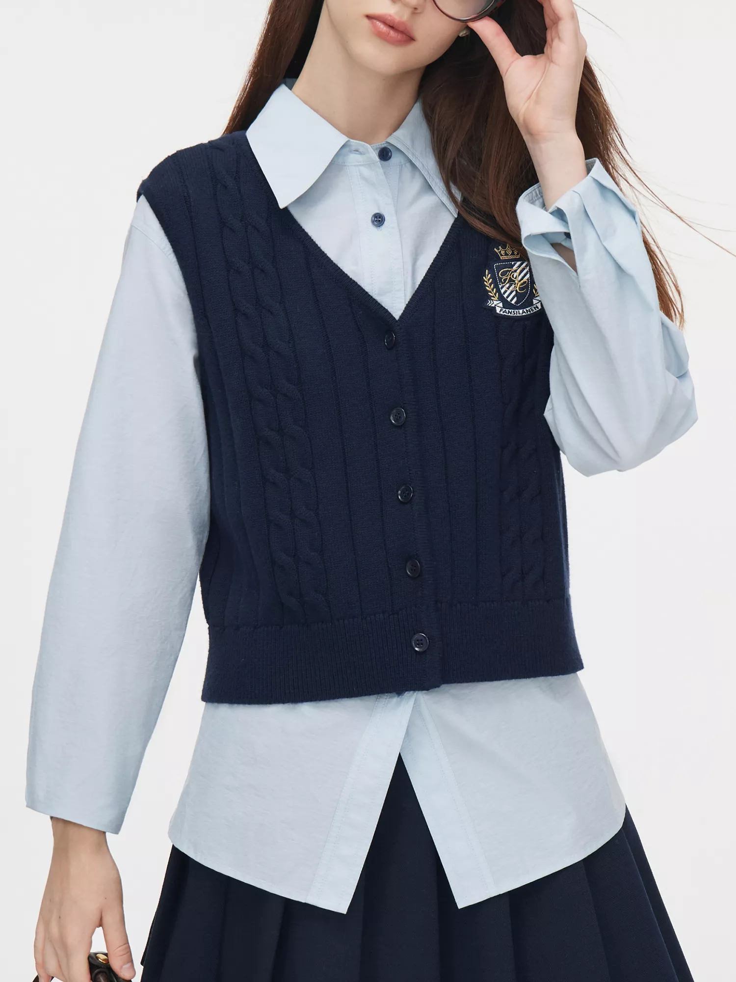 Wool Sleeveless V-Neck Sweater Vest for Women – Navy Blue College Style